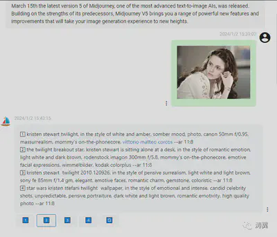 The buttons below correspond to the sequence of prompts. Click to directly generate an image.